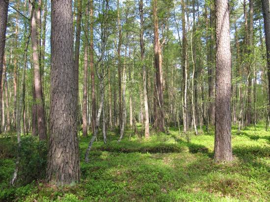 Na wilgotniejszym wariancie tego siedliska wytworzyły się natomiast zbiorowiska roślinne pomorskich kwaśnych dąbrów: pomorskiego acydofilnego lasu bukowo-dębowego Fago-Quercetum petraeae i pomorskiego acydofilnego lasu brzozowo-dębowego Betulo-Quercetum roboris. Na bogatszym rodzaju wariantu wilgotnego wykształcił się zespół grądu subatlantyckiego Stellario-Carpinetum. Drzewostan buduje sosna zwyczajna z udziałem dębu bezszypułkowego i brzozy brodawkowatej. Podszyt tworzą jarząb pospolity, kruszyna, dęby, brzoza brodawkowata i dereń. Siedlisko to występuje niewielkimi płatami na całej powierzchni Parku, zajmując niecałe 5% powierzchni leśnej.