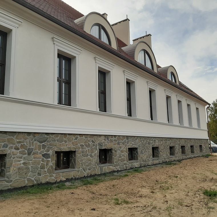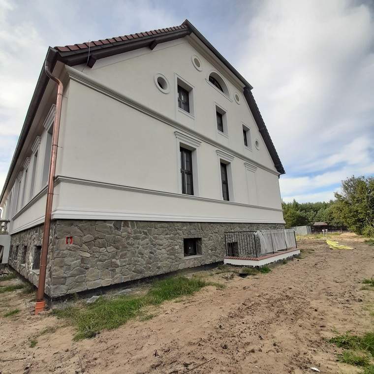 - ułożenie cokołu z kamienia łupanego na elewacji budynku,