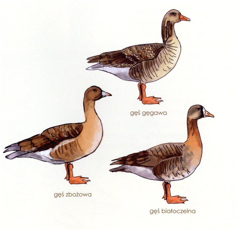 Gęsi należą do rodziny kaczkowatych. Zamieszkują brzegi wód na całym świecie. Te duże ptaki charakteryzują się brakiem różnic w ubarwieniu między samcem i samicą. Gęgawa, która jest przodkiem gęsi domowej może ważyć nawet przeszło 4 kg. W Polsce gęsi widujemy najczęściej na przelotach , czyli w okresie wiosny lub jesieni, kiedy to przemieszczają się w miejsca lęgowe lub na zimowiska. Niektóre gęsi pozostają u nas i zakładają gniazda.