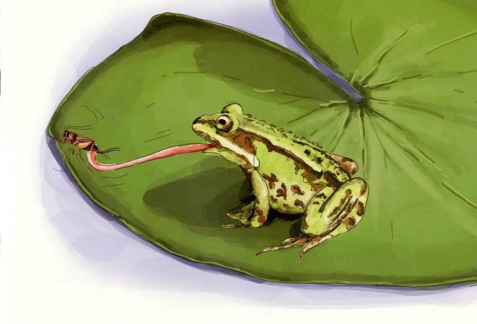 Żaby są aktywne głównie o zmierzchu i nocą, gdy wilgotność powietrza jest większa. Zawsze starają się być blisko wody lub w miejscach wilgotnych dlatego, że ich skóra jest niedostatecznie zabezpieczona przed wysychaniem. W ciągu dnia chowają się m.in. w różnych szczelinach, pod liśćmi i kamieniami. Zjadają przede wszystkim owady, dżdżownice i ślimaki. Atakują tylko żywą i poruszającą się zdobycz. Ma to związek z widzeniem żab, które nie rozróżniają kształtów, natomiast świetnie rejestrują ruch.