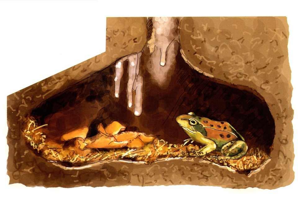 Aby przetrwać zimę żaby najczęściej zagrzebują się w ziemi lub wchodzą do różnych naturalnych schronień jak np. zagłębienia pod kamieniami i konarami drzew (robi tak np. żaba jeziorowa). A inne, jak chociażby żaba śmieszka zimują na dnie dużych, głębokich zbiorników wodnych wybierając zazwyczaj miejsca zaciszne i muliste. Mogą również zimować pod brzegami (pod nawisami) w wolno płynących rzekach, również zagrzebując się tam w mule.