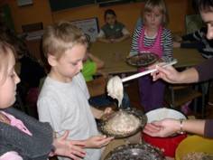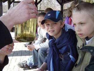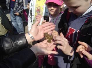 Dzieci łatwo zaobserwowały, że głosy sympatycznych płazów wzmacniane są przy pomocy rezonatorów, czyli worków głosowych. Prawdziwy żabi koncert dała uczniom wyłowiona żaba jeziorkowa. Uzupełnieniem zajęć terenowych była prezentacja multimedialna poświęcona żabom i ropuchom zorganizowana w sali wykładowej. Z wielkim zainteresowaniem uczniowie wysłuchali wiadomości, a później sami kolorowali traszki i rysowali samca żaby w jego barwach godowych. Później, już w szkole uczniowie dzielili się ważeniami i zapamiętanymi informacjami z życia płazów, brali też udział w klasowym żabim –quizie. Zajęcia w PNBT na długo pozostaną w ich pamięci. Bardzo za nie dziękują pracownikom PNBT.