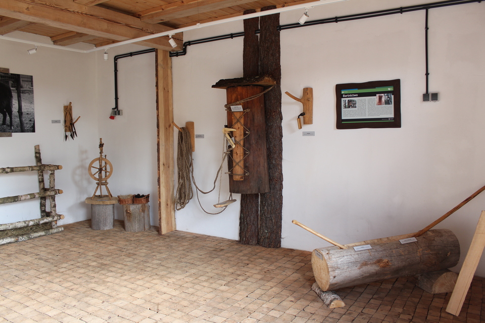 Ta część wystawy została poświęcona bartnictwu. Można więc zapoznać się tu z dawną formą pszczelarstwa leśnego, zobaczyć wykończoną kłodę bartną a tak zadziałek, czyli rozpoczętą kłodę bartną. Na wystawie zostały również zaprezentowane narzędzia bartnicze: leziwo, skobliczka, piesznia i cieślica.