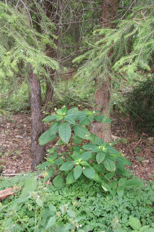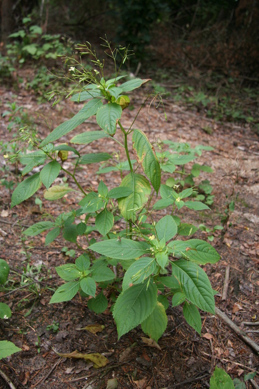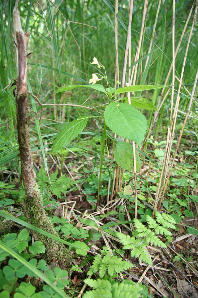 Niecierpek drobnokwiatowy Impatiens parviflora to jednoroczny gatunek pochodzący z Azji. Do Europy trafił w XIX w. sprowadzony do Ogrodu Botanicznego w Genewie. Dzisiaj zajmuje prawie całą Europe Środkową. Dorasta do 0,5 m wysokości, jego kwiaty są bladożółte, a owocem jest gwałtownie pękająca torebka, rozrzucająca nasiona na znaczne odległości. Niecierpek występuje w różnych siedliskach, preferuje żyzne, cieniste lasy liściaste, często nad brzegami wód. Wkraczając w siedliska naturalne praktycznie całkowicie eliminuje naturalną roślinność runa.