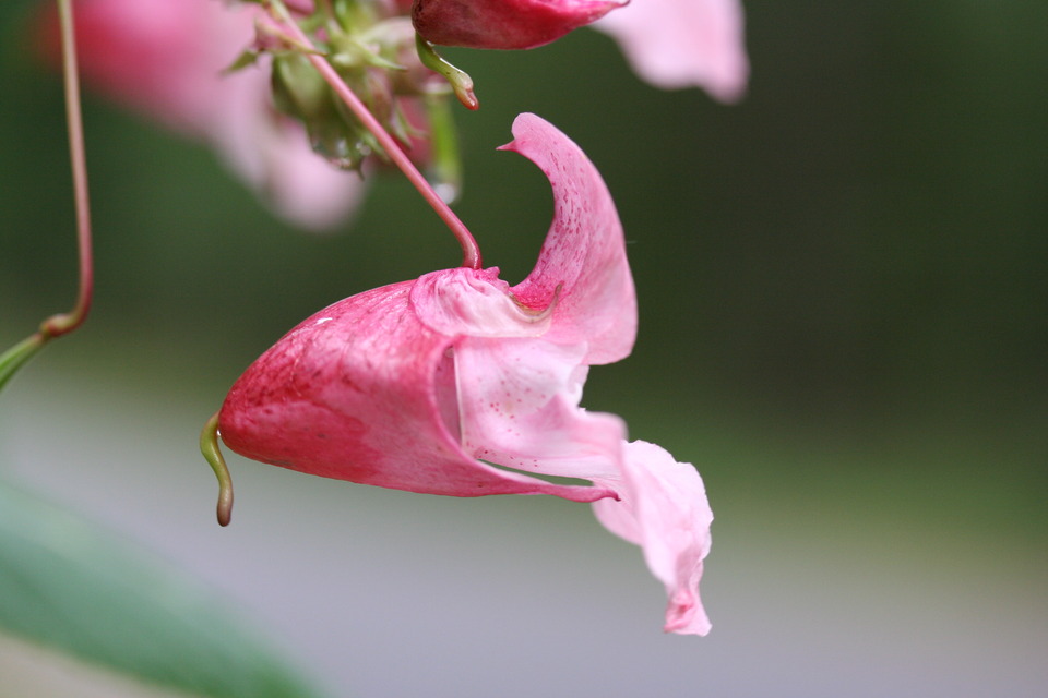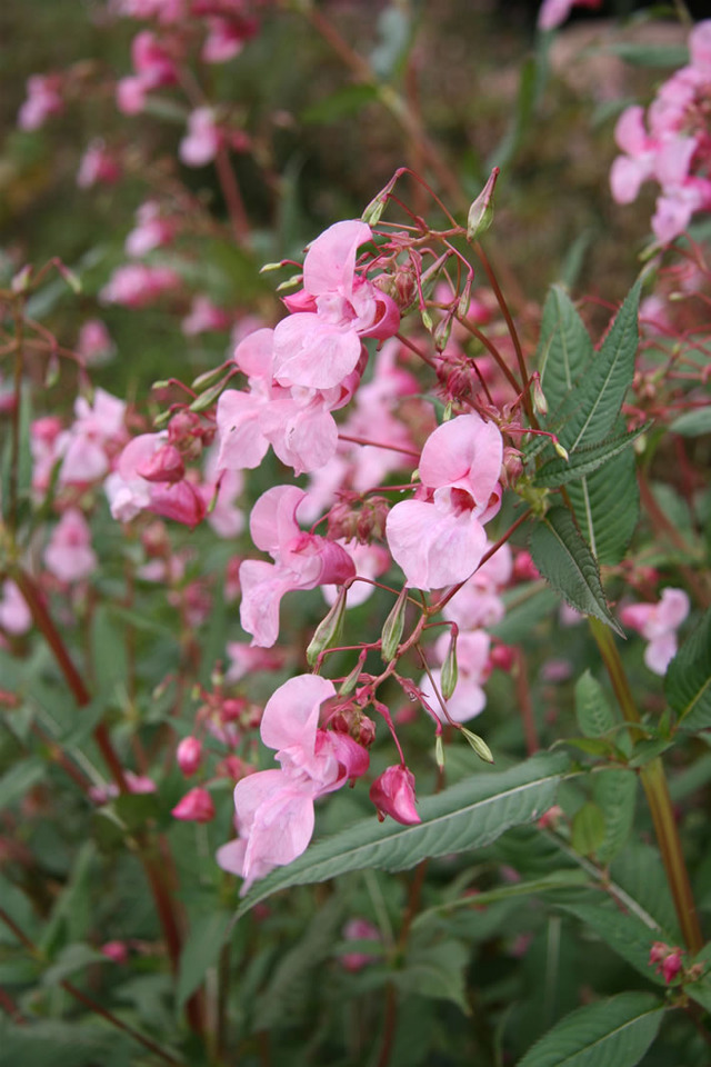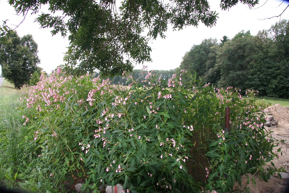Impatens glandulifera to gatunek okazałej byliny o grubej pustej łodydze i dużych różowych kwiatach. Roślina pochodzi z Azji, gdzie naturalnie występuje w obrębie Himalajów i zachodnich Indii. Do Europy został sprowadzony jako roślina ozdobna w połowie XIX wieku. Szybko jednak rozprzestrzenił się wzdłuż dolin rzecznych, zdobywając coraz to nowe tereny. Owoce niecierpka to swoista bomba. Kiedy dojrzewają ciśnienie w komórkach jest bardzo wysokie, tak, że przy niewielkim nawet dotknięciu, wybuchają rozrzucając nasiona w promieniu 7 m! Pozwala to roślinie pokonywać naturalne i sztuczne bariery ekologiczne, takie jak niewielkie cieki i drogi. Niecierpek gruczołowaty tworząc zwarte, potężne łany (roślina dorasta nawet do 2 m wysokości!), wypiera rodzime gatunki roślin, powodując całkowita degradację naturalnych siedlisk. Na naszym terenie niecierpek w stanie dzikim występuje jeszcze stosunkowo rzadko. Stopniowo pojawia się nad Jeziorem Charzykowskim, gdzie, jeśli nie zostanie podjęta akcja jego usunięcia, stopniowo rozprzestrzeniać się będzie wzdłuż jego brzegów.