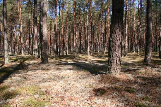 Sosnowy bór chrobotkowy występuje na skrajnie ubogich i suchych siedliskach leśnych.
