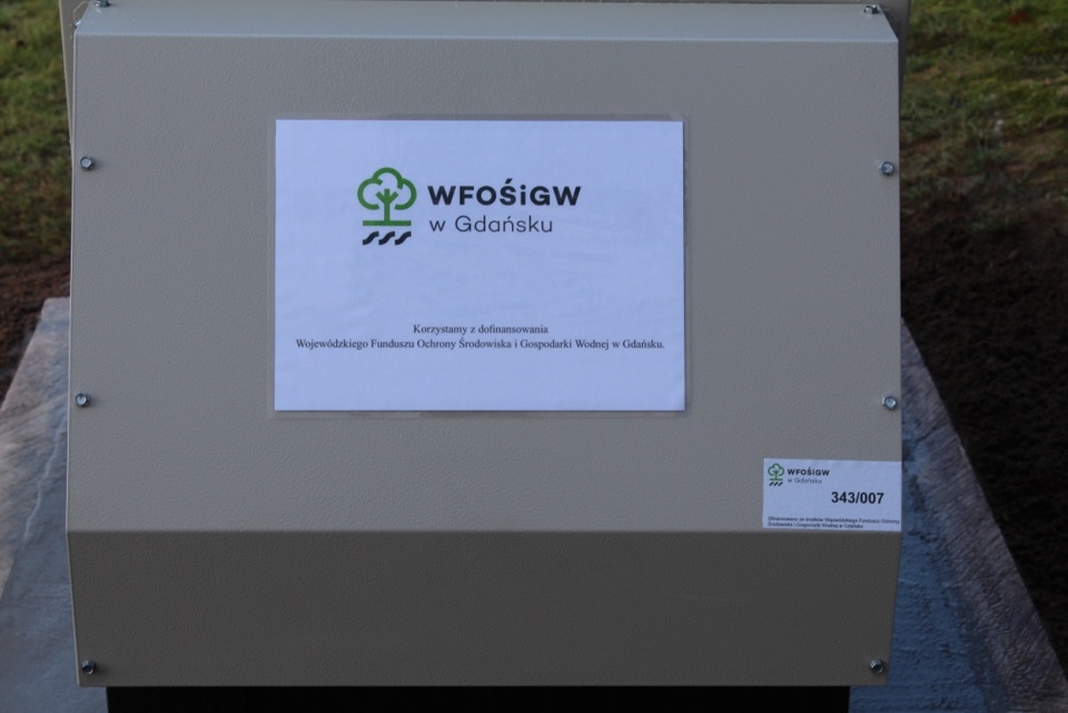 Na zakupionych i zamontowanych urządzeniach umieszczono tablicę oraz naklejki z numerem inwentarzowym informujące o dofinansowaniu ze środków WFOŚiGW w Gdańsku.